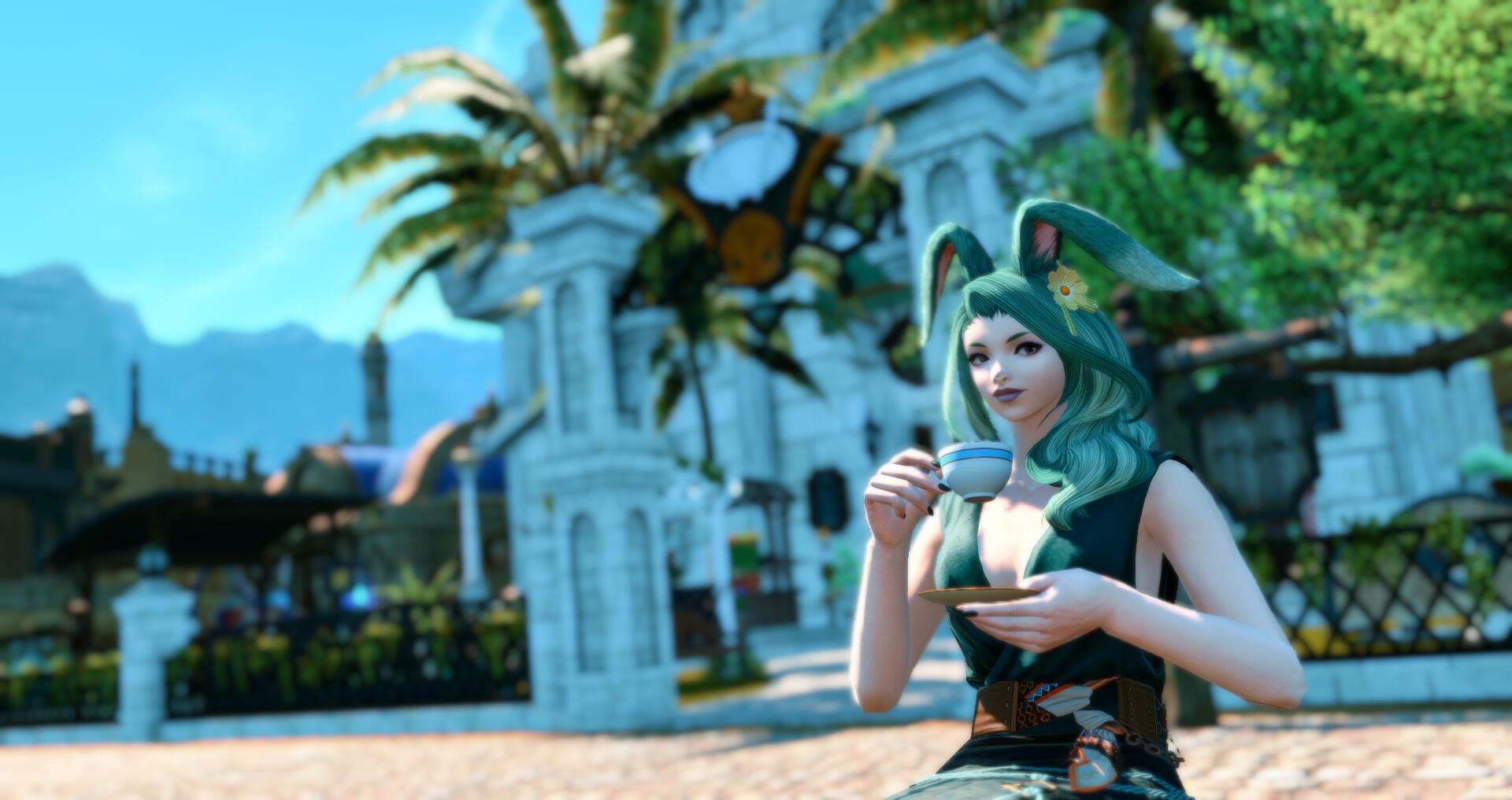 Forced to leave her home in the Othardian wilderness due to tragedy as a youth, Mint found herself an immigrant to Eorzea. Armed with her child-like innocence and naivety, she proves no match for the byways of Limsa Lominsa. Her eventual savior comes in the form of an elderly scholar. Through his tutelage, she was introduced to the world of academia and acclimating to polite society. While grateful, she fears losing connection to nature. A severed link to her people and homeland.Years go by and her newfound father figure passes. Now a fully grown adult, Mint finds herself once against lost in the world without connections and family. More equipped to handle the unknown with an affinity for tea and willingness to crack a joke, she throws herself into the idea of becoming a socialite. Constantly searching for new connections, new family: a place to finally belong.Through various friends and adventures this brings Mint to the welcoming doorstep of the Oasis. Tentative and slow-going at first, she begins to develop a bond with its eccentric proprietor: Heidi Bellveil.As the friendship and fondness for the location grow, that yearning for a family and a place to finally put down meaningful roots slowly comes to fruition. Who knows what the future may hold, but for now: Mint endeavors to share her wide-eyed optimism and hope with any patrons that cross her path.